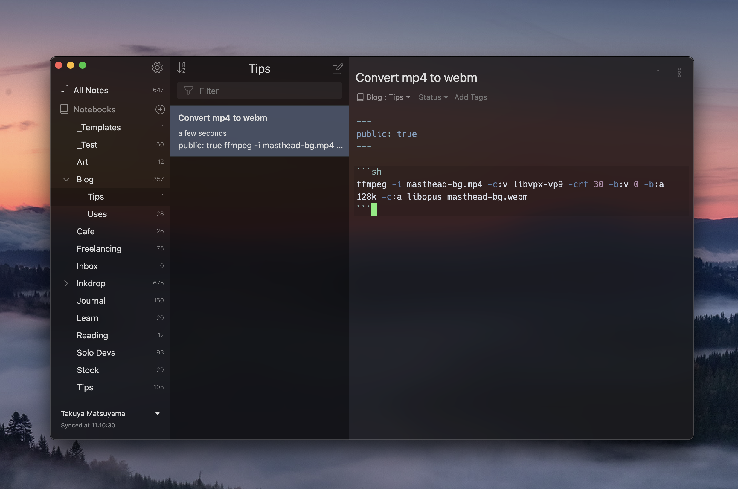 Inkdrop provides a seamless experience between devices and platforms, which allows you to read and write Markdown anywhere. However, it sacrificed the affinity with local file systems for the sync feature. To solve that, we've created live-export, which allows you to export notes 'programmatically' to your local filesystem.