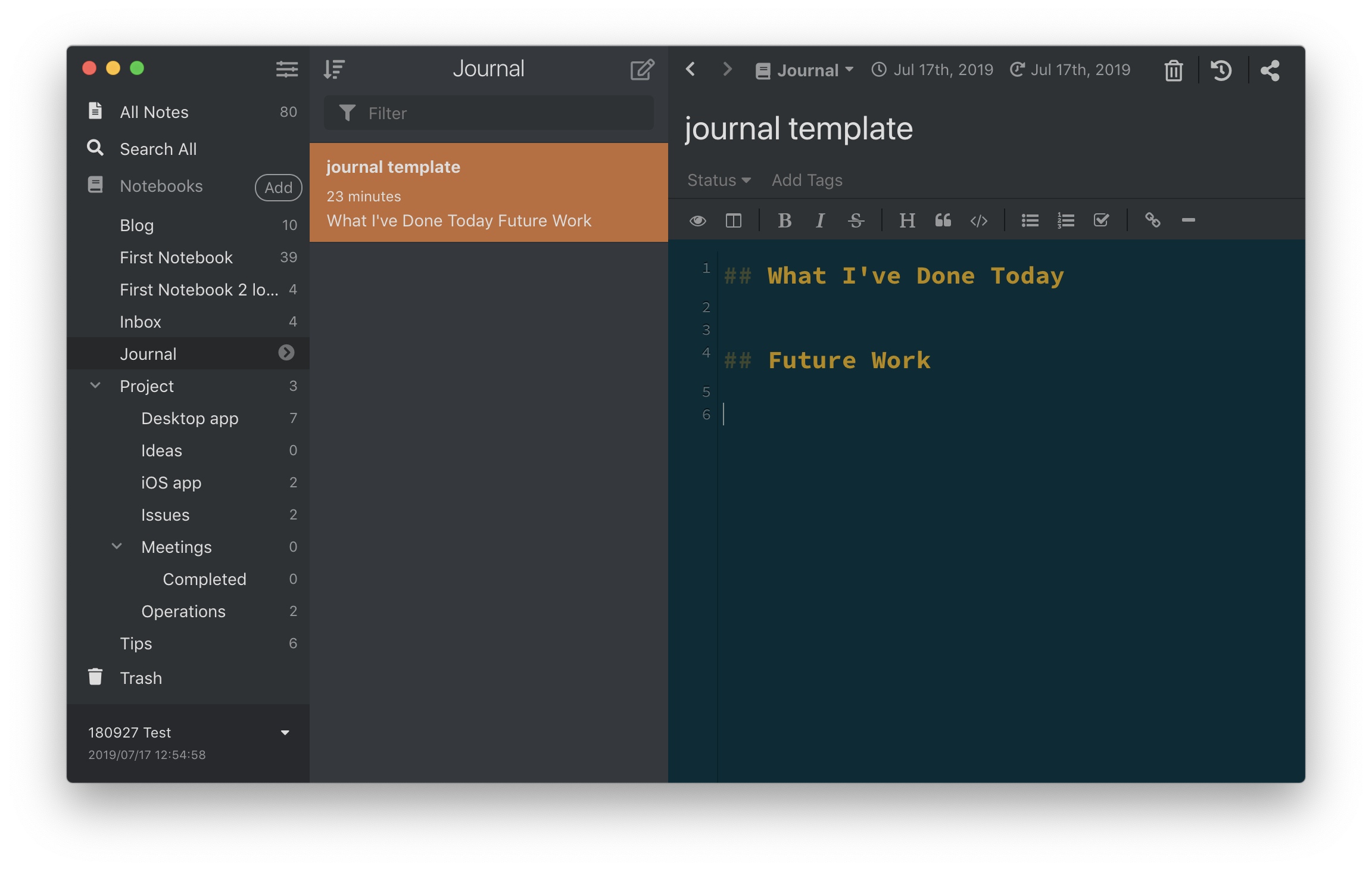 Once Inkdrop becomes a part of your daily workflow, you may want to save time and effort with note templates. Inkdrop provides powerful APIs to let you do that. Here is a walkthrough to make a note template for journaling.